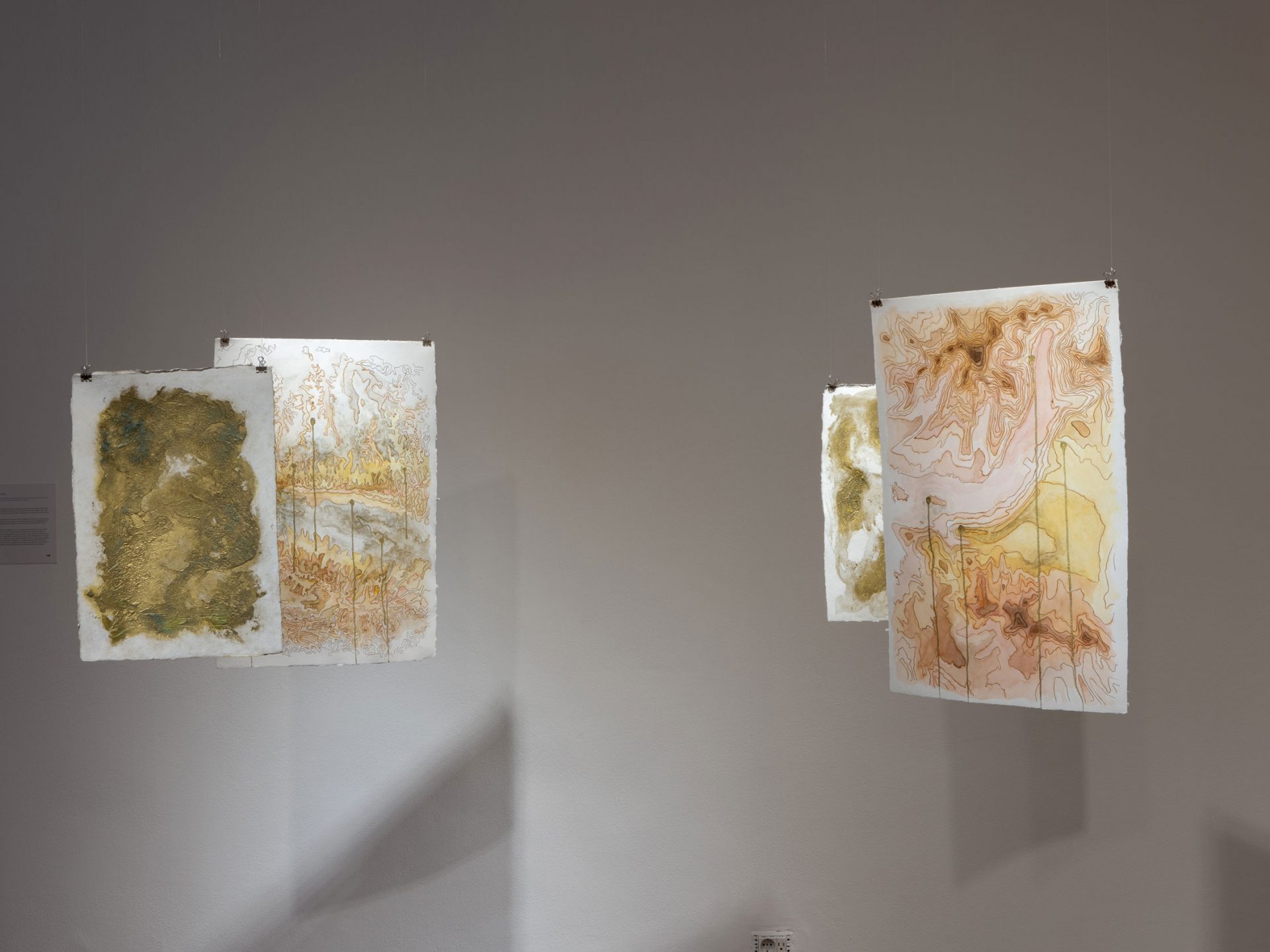 Los mapas han servido siempre para abstraer la materialidad del territorio y las relaciones espaciales. Aquí se convierten, no solamente en representaciones de una geografía, sino en un mapeado que habla de justicia climática y de políticas de uso de la tierra y del extractivismo.